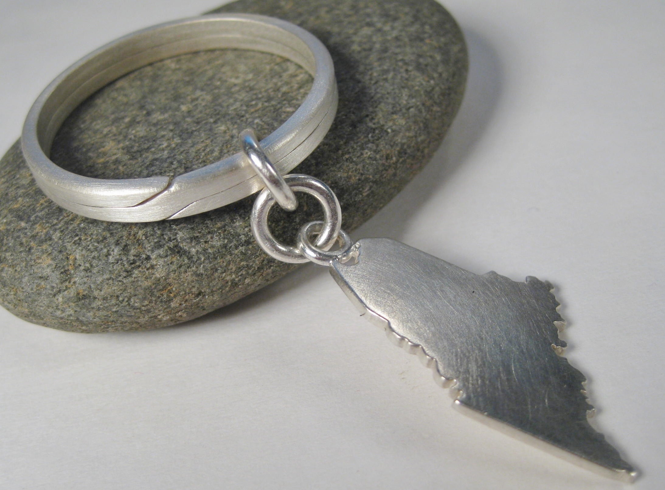 Large State of Maine silhouette, 1.25", on soldered sterling loops and solid sterling silver split ring. Includes a set of stainless split rings as well.